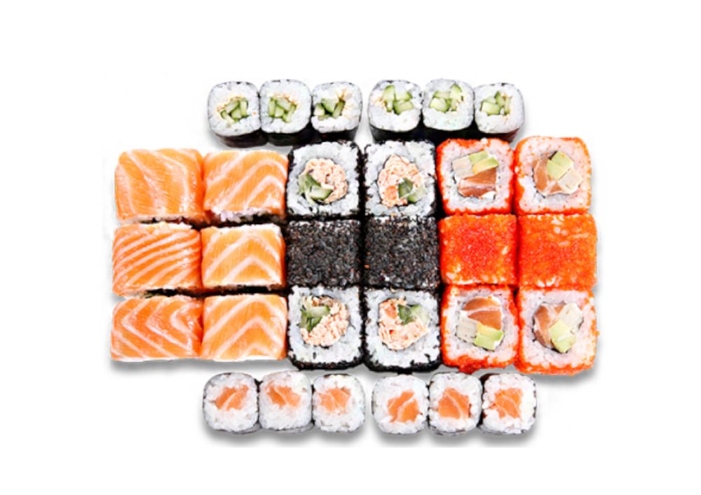 Sastāvā – Rolls ar gurķi un lasi, Philadelphia, Čikāga un Kalifornija ar lasi.