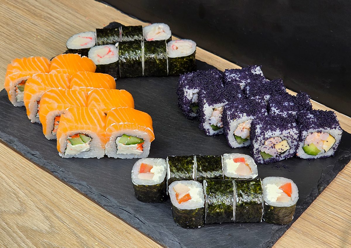 Sojas mērce – 3 gab., marinēts ingvers, vasabi, piederumi.