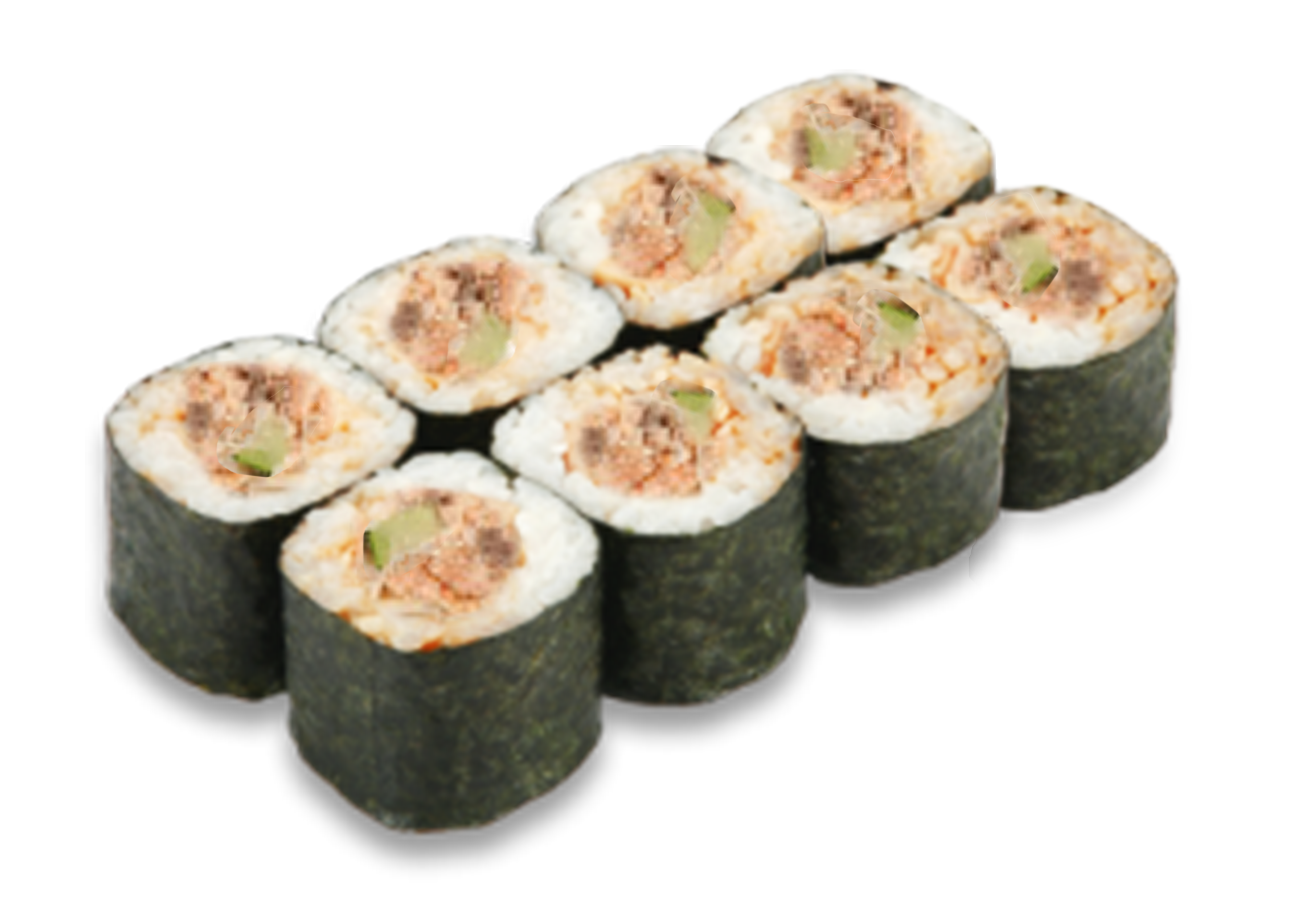 Rolls ar ceptu lasi, gurķi un japāņu majonēzi.
